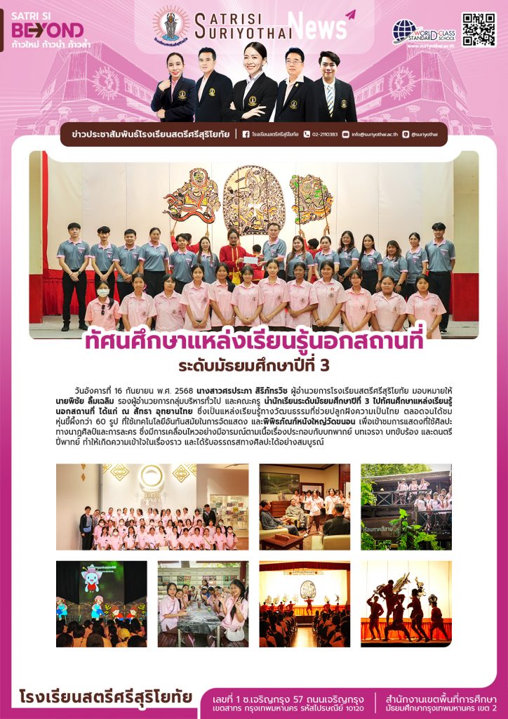 โรงเรียนสตรีศรีสุริโยทัย มีการใช้งานเทคโนโลยีคุกกี้ หรือ เทคโนโลยีอื่นที่มีลักษณะใกล้เคียงกันกับคุกกี้ บนเว็บไซต์ของเรา โปรดศึกษา นโยบายการใช้คุกกี้ และ นโยบายความเป็นส่วนตัว ก่อนใช้บริการเว็บไซต์ ได้ที่ลิงค์ด้านล่าง
