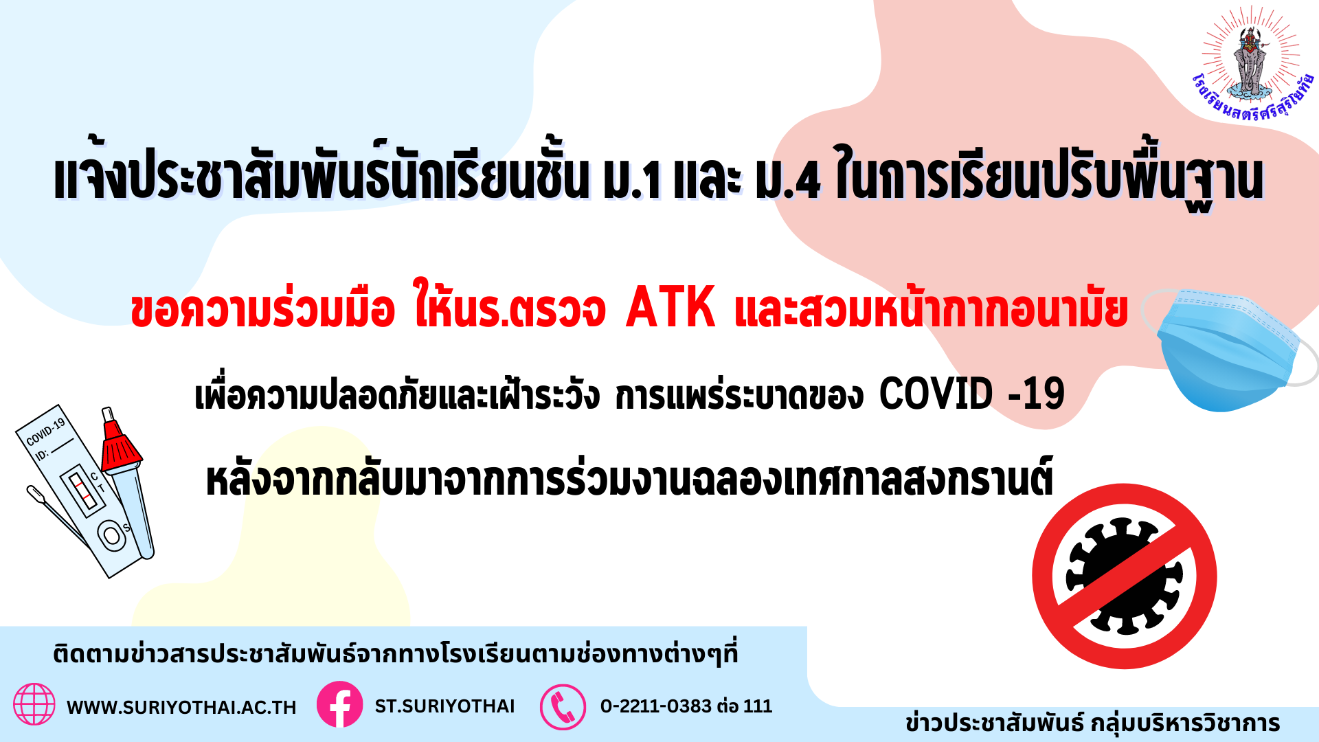 เว็บไซต์ โรงเรียนสตรีศรีสุริโยทัย มีการใช้งานเทคโนโลยีคุกกี้ หรือ เทคโนโลยีอื่นที่มีลักษณะใกล้เคียงกันกับคุกกี้ บนเว็บไซต์ของเรา โปรดศึกษา นโยบายการใช้คุกกี้ และ นโยบายความเป็นส่วนตัว ก่อนใช้บริการเว็บไซต์ ได้ที่ลิงค์ด้านล่าง