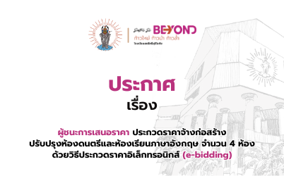 ประกาศผู้ชนะประกวดราคาจ้างก่อสร้างปรับปรุงห้องดนตรีและห้องเรียนภาษาอังกฤษ จำนวน 4 ห้อง ด้วยวิธี e-bidding