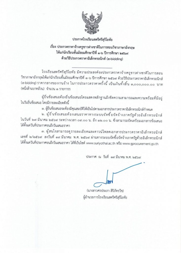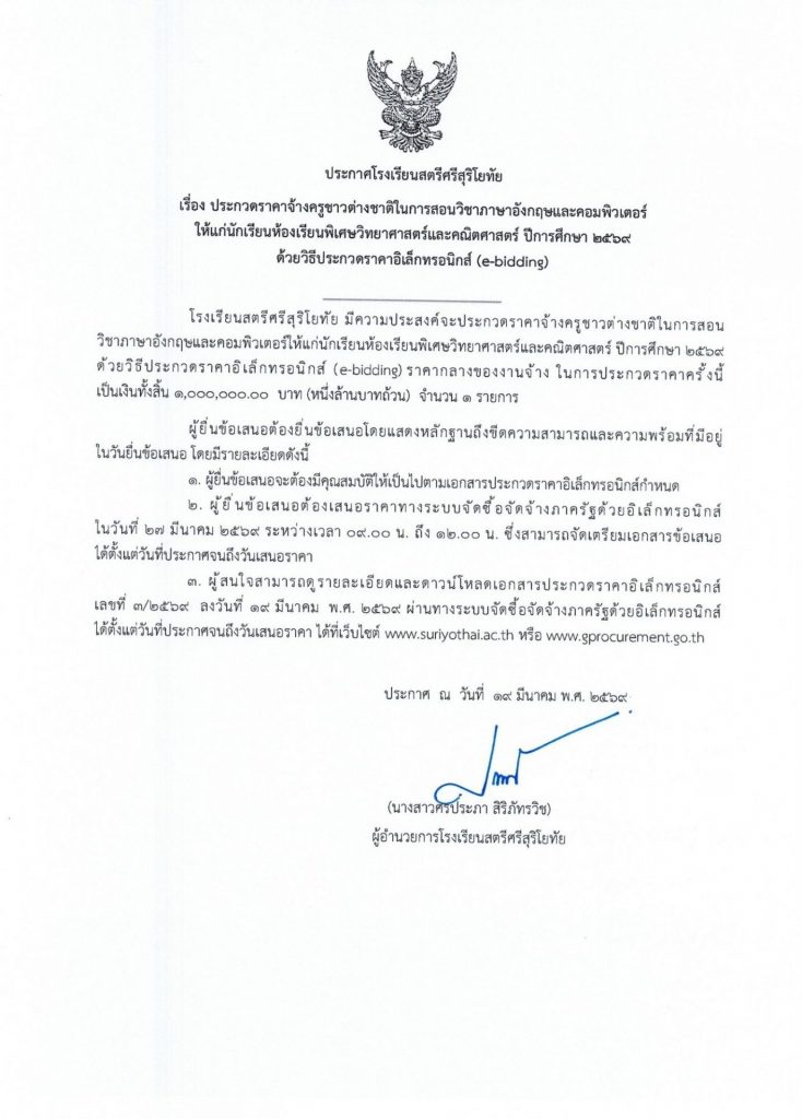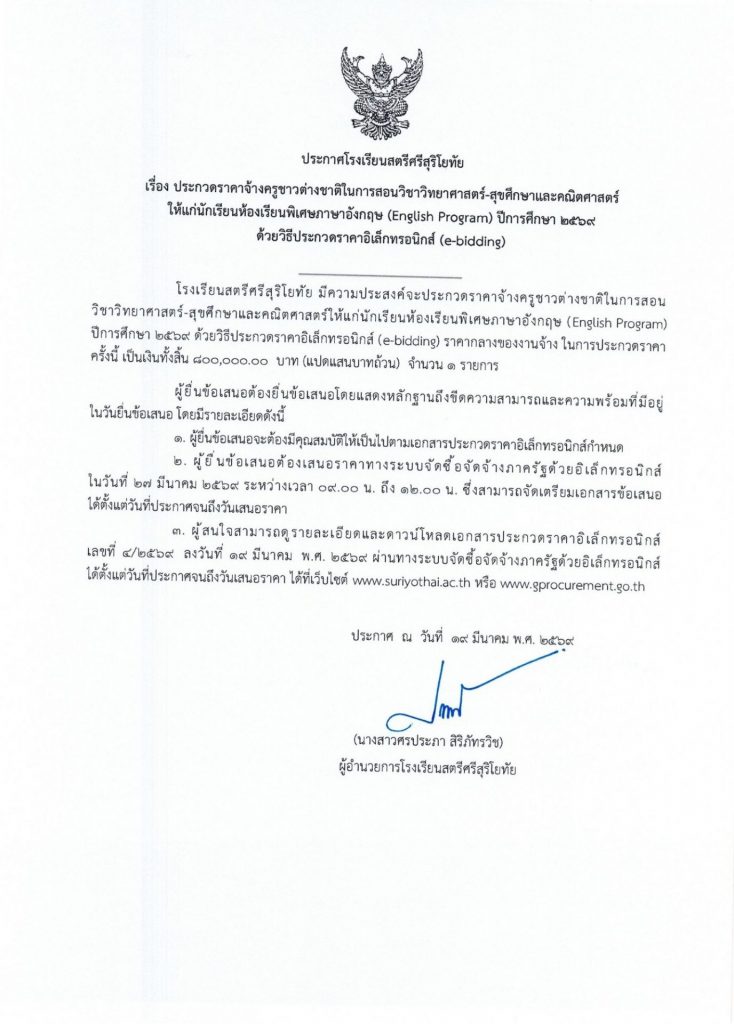 จ้างครูต่างชาติ EP Gifted และห้องเรียนปกติ