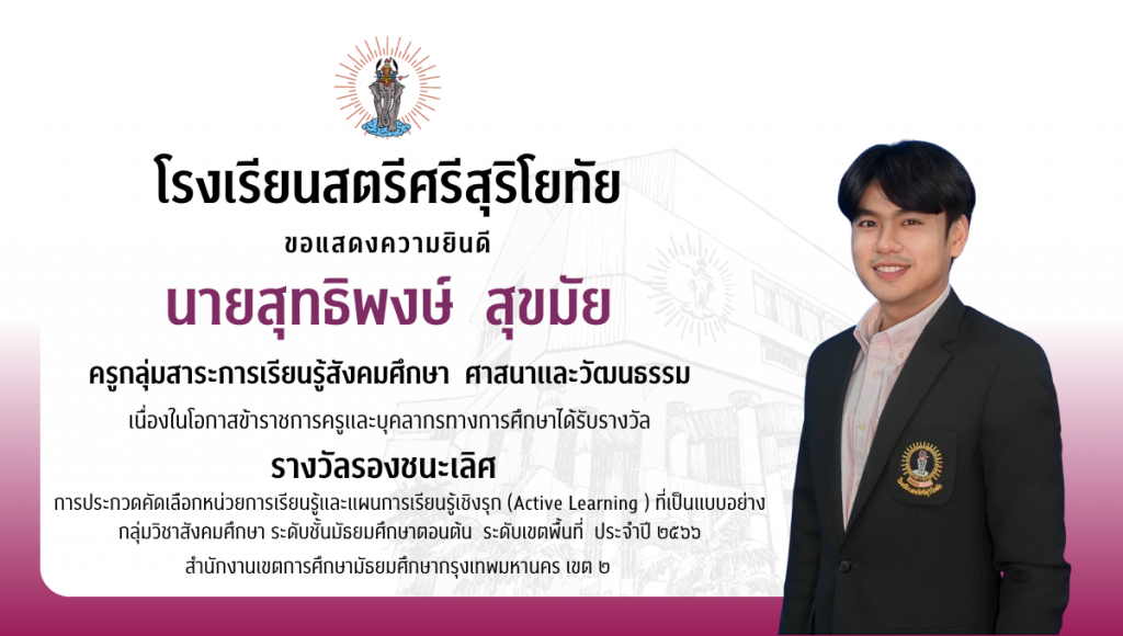 เว็บไซต์ โรงเรียนสตรีศรีสุริโยทัย มีการใช้งานเทคโนโลยีคุกกี้ หรือ เทคโนโลยีอื่นที่มีลักษณะใกล้เคียงกันกับคุกกี้ บนเว็บไซต์ของเรา โปรดศึกษา นโยบายการใช้คุกกี้ และ นโยบายความเป็นส่วนตัว ก่อนใช้บริการเว็บไซต์ ได้ที่ลิงค์ด้านล่าง