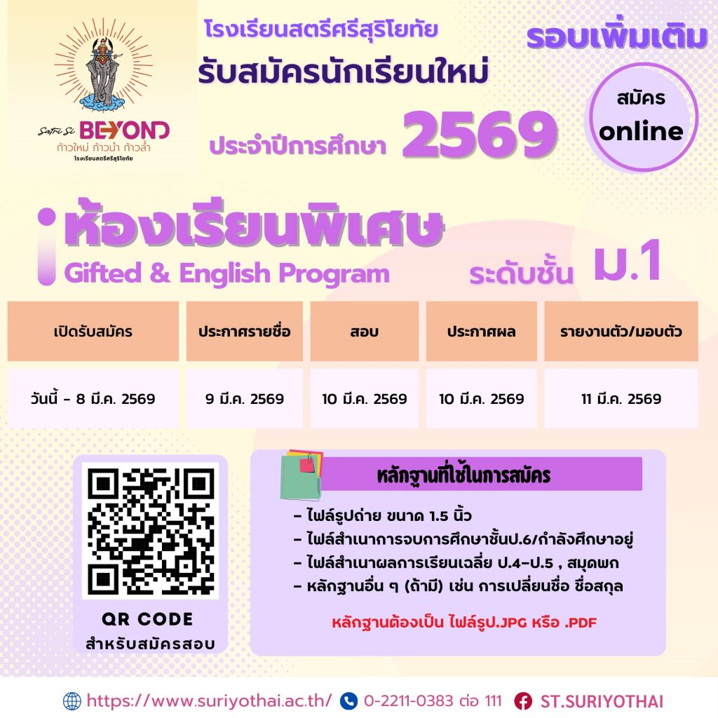 📢 เปิดรอบพิเศษ! สำหรับนักเรียนห้องเรียนพิเศษ วิทยาศาสตร์ คณิตศาสตร์ (Gifted) และ ห้องเรียนพิเศษภาษาอังกฤษ (English program)