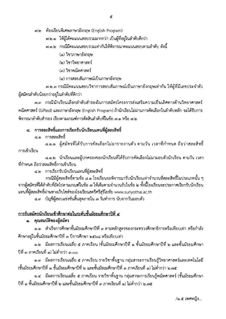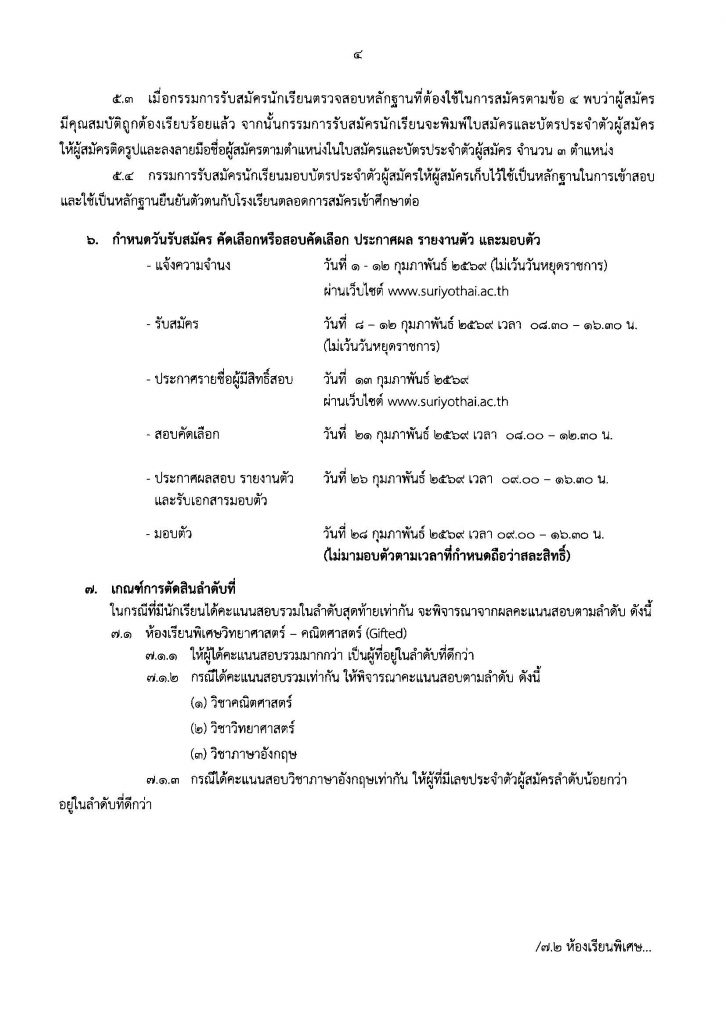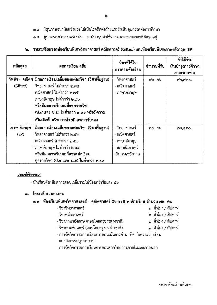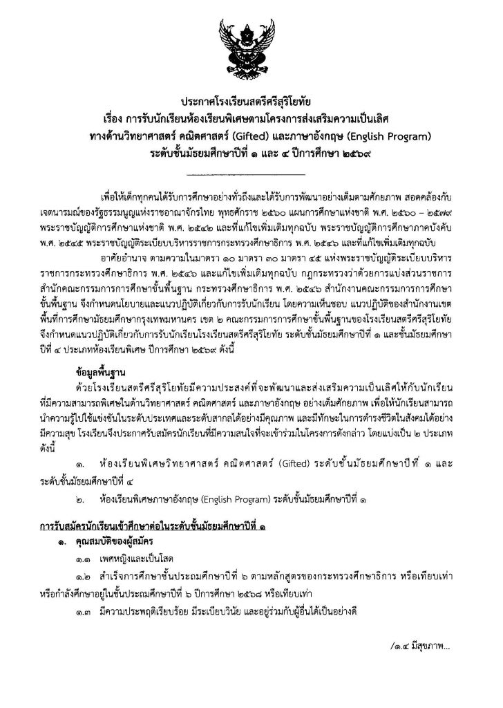 การรับนักเรียนห้องเรียนพิเศษ Gifted และ English Program ระดับ ม.1 และ 4 ปีการศึกษา 2569