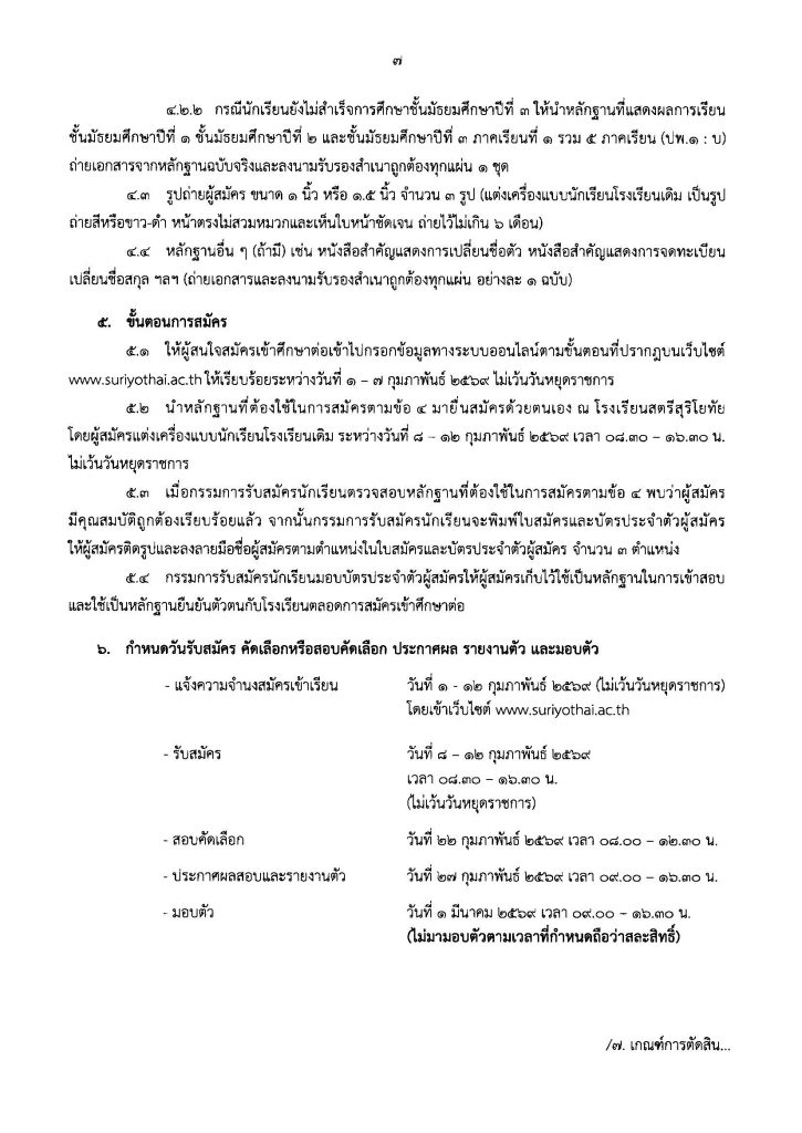 การรับนักเรียนเข้าศึกษาต่อในระดับชั้นมัธยมศึกษาปีที่ 1 และ 4 (ห้องเรียนปกติ) ปีการศึกษา 2569