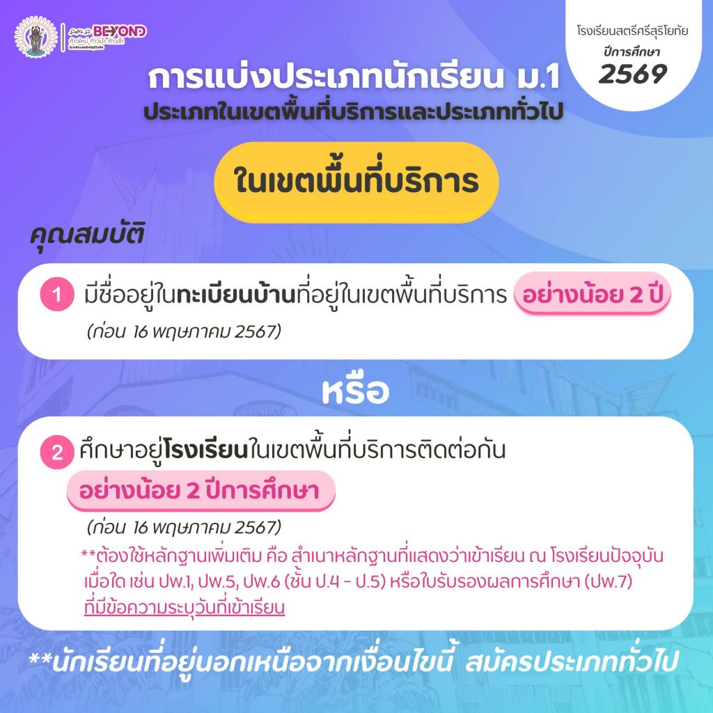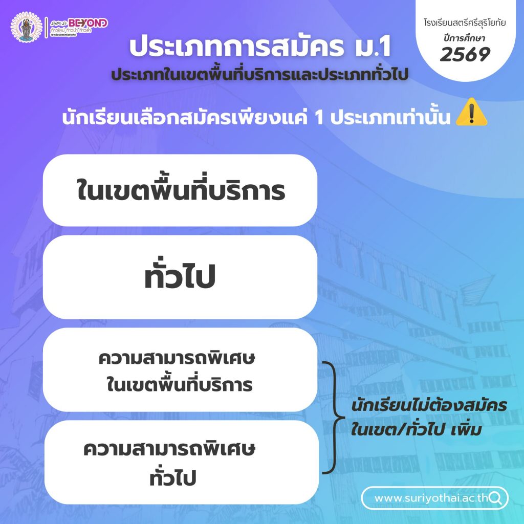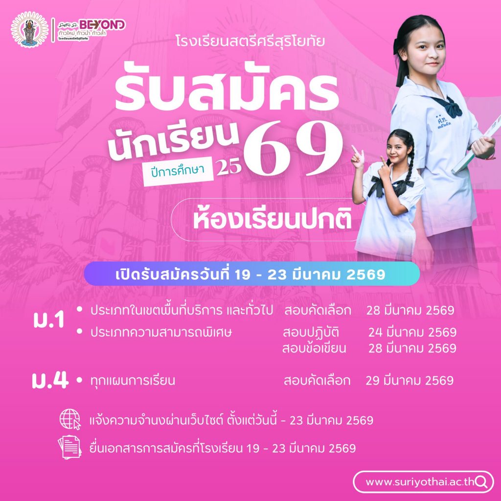 การรับนักเรียนเข้าศึกษาต่อในระดับชั้นมัธยมศึกษาปีที่ 1 และ 4 (ห้องเรียนปกติ) ปีการศึกษา 2569