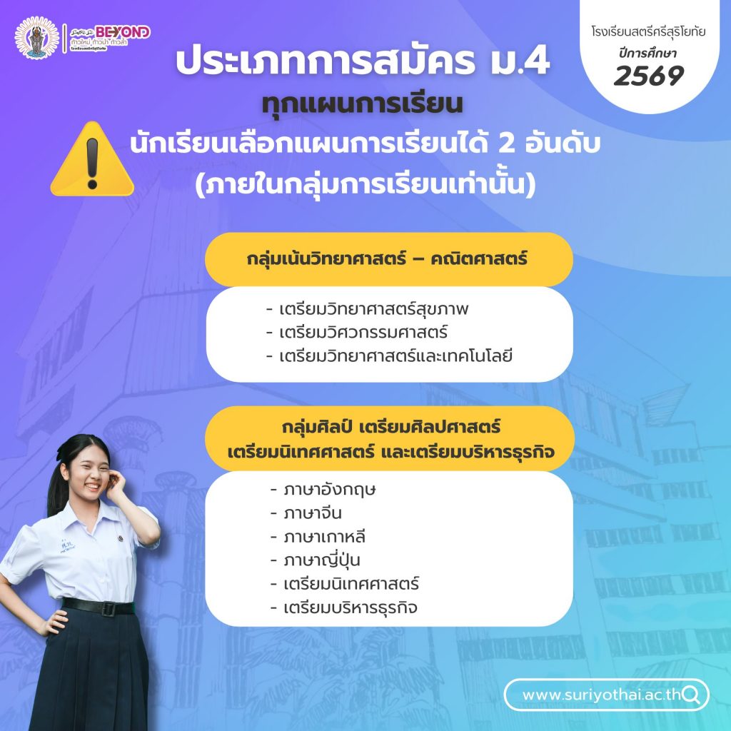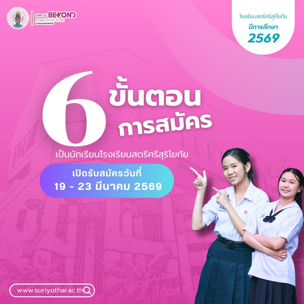 เว็บไซต์ โรงเรียนสตรีศรีสุริโยทัย มีการใช้งานเทคโนโลยีคุกกี้ หรือ เทคโนโลยีอื่นที่มีลักษณะใกล้เคียงกันกับคุกกี้ บนเว็บไซต์ของเรา โปรดศึกษา นโยบายการใช้คุกกี้ และ นโยบายความเป็นส่วนตัว ก่อนใช้บริการเว็บไซต์ ได้ที่ลิงค์ด้านล่าง