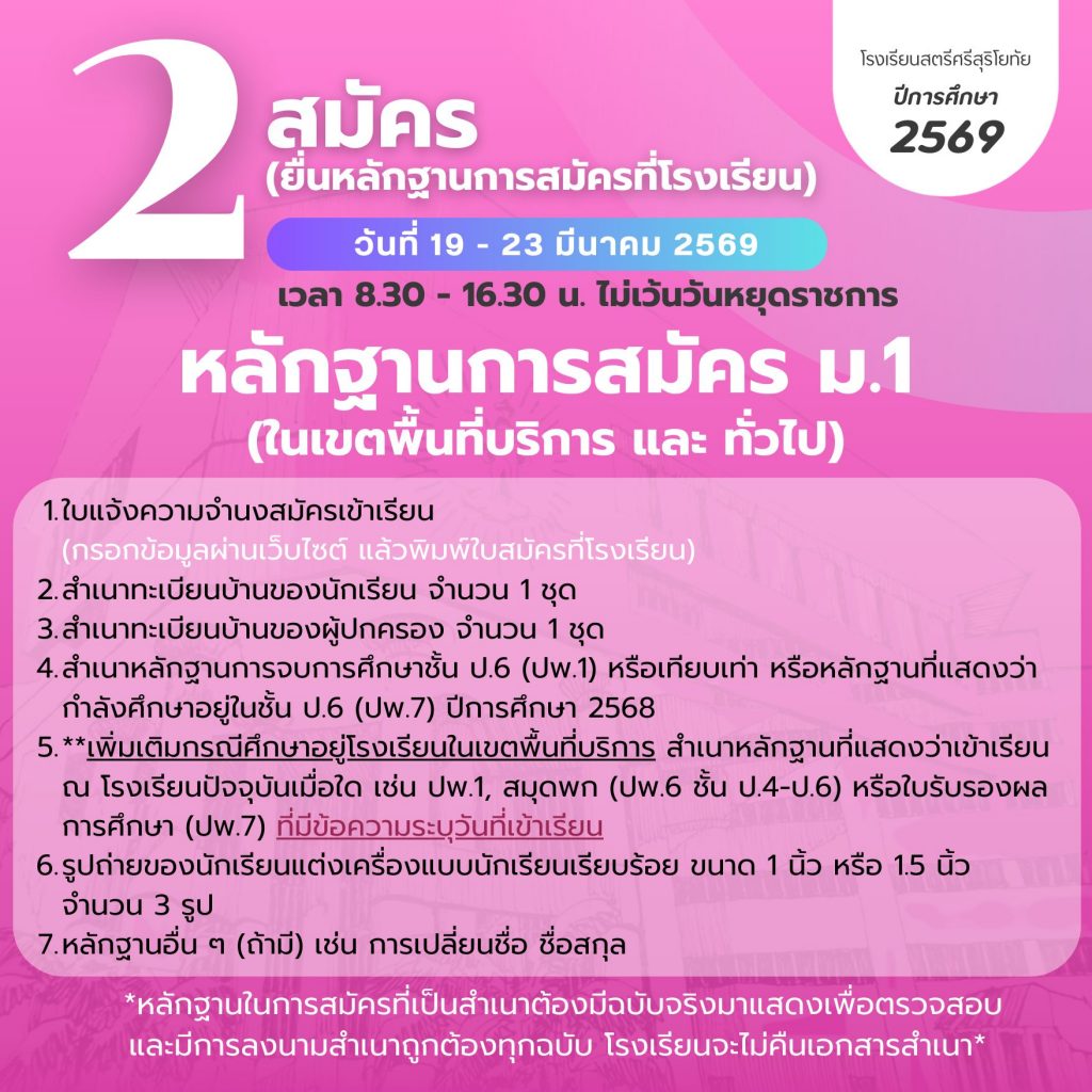 ประชาสัมพันธ์ทั่วไป, ประชาสัมพันธ์รับนักเรียน 2569