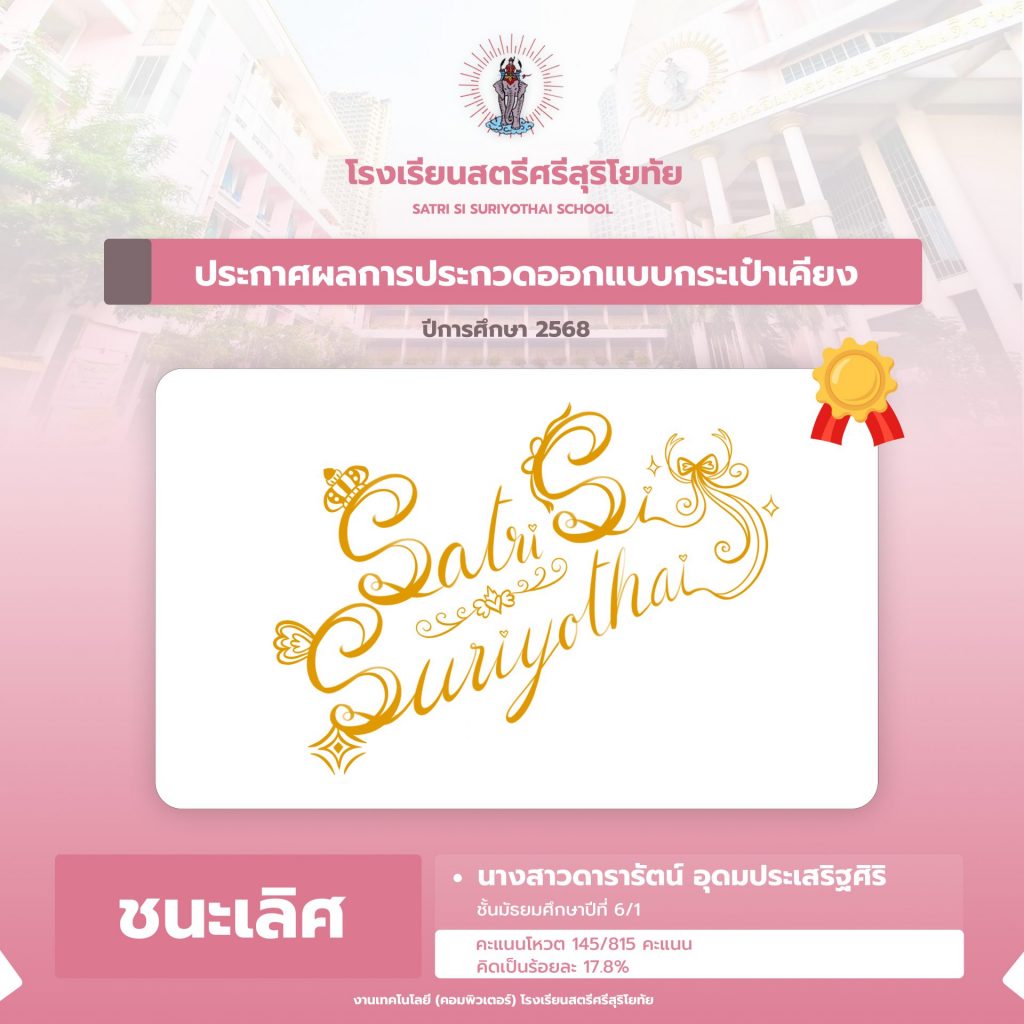โรงเรียนสตรีศรีสุริโยทัย มีการใช้งานเทคโนโลยีคุกกี้ หรือ เทคโนโลยีอื่นที่มีลักษณะใกล้เคียงกันกับคุกกี้ บนเว็บไซต์ของเรา โปรดศึกษา นโยบายการใช้คุกกี้ และ นโยบายความเป็นส่วนตัว ก่อนใช้บริการเว็บไซต์ ได้ที่ลิงค์ด้านล่าง