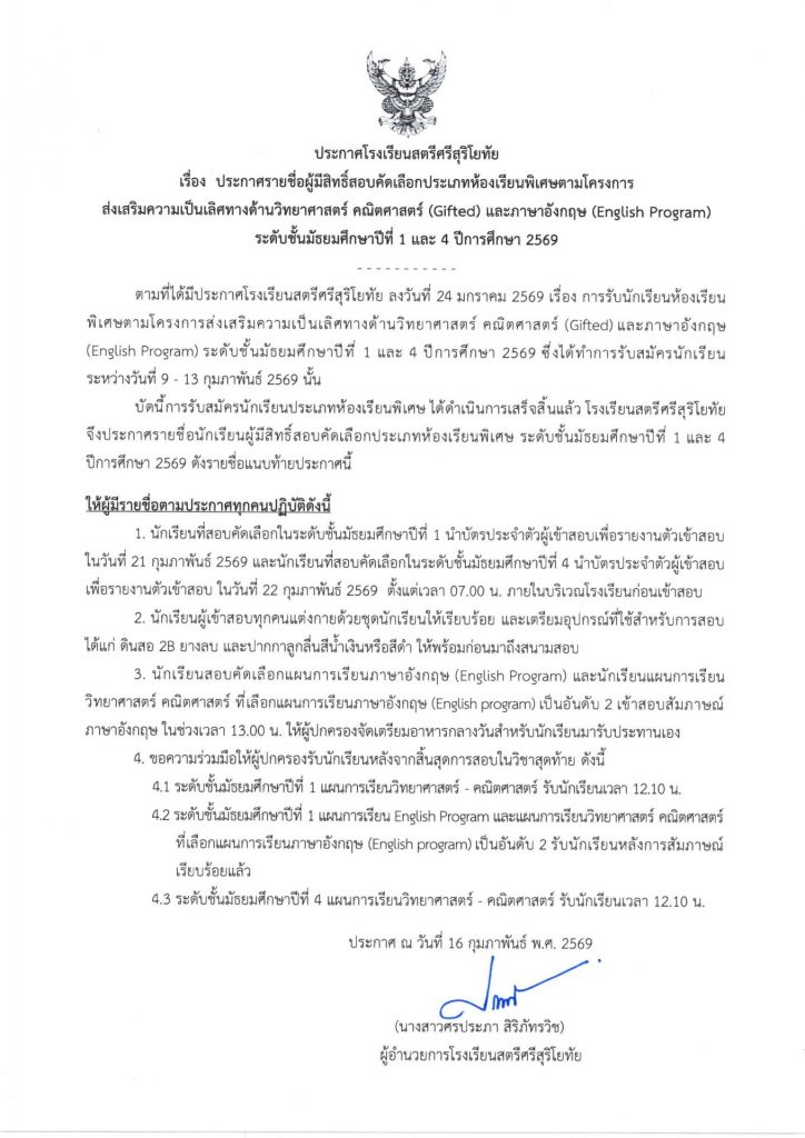 โรงเรียนสตรีศรีสุริโยทัย มีการใช้งานเทคโนโลยีคุกกี้ หรือ เทคโนโลยีอื่นที่มีลักษณะใกล้เคียงกันกับคุกกี้ บนเว็บไซต์ของเรา โปรดศึกษา นโยบายการใช้คุกกี้ และ นโยบายความเป็นส่วนตัว ก่อนใช้บริการเว็บไซต์ ได้ที่ลิงค์ด้านล่าง