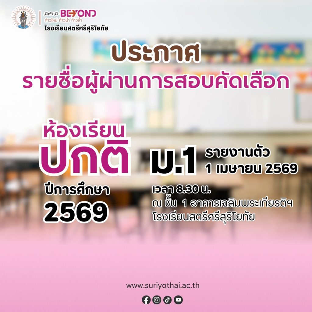 📢ประกาศรายชื่อผู้ผ่านการคัดเลือกเข้าศึกษาต่อระดับชั้น ม.1 ประเภทห้องเรียนปกติ ปีการศึกษา 2569