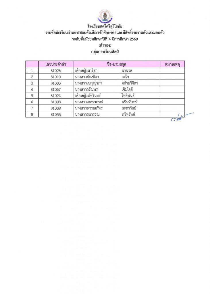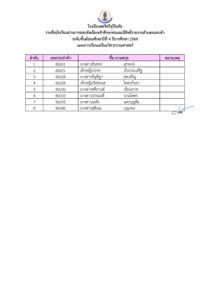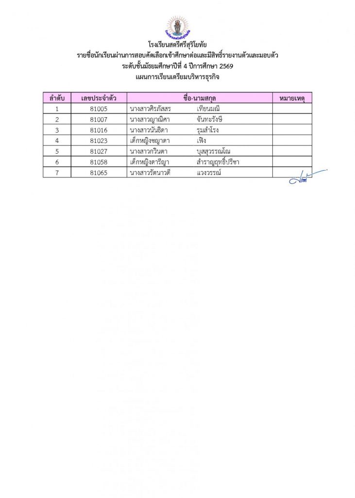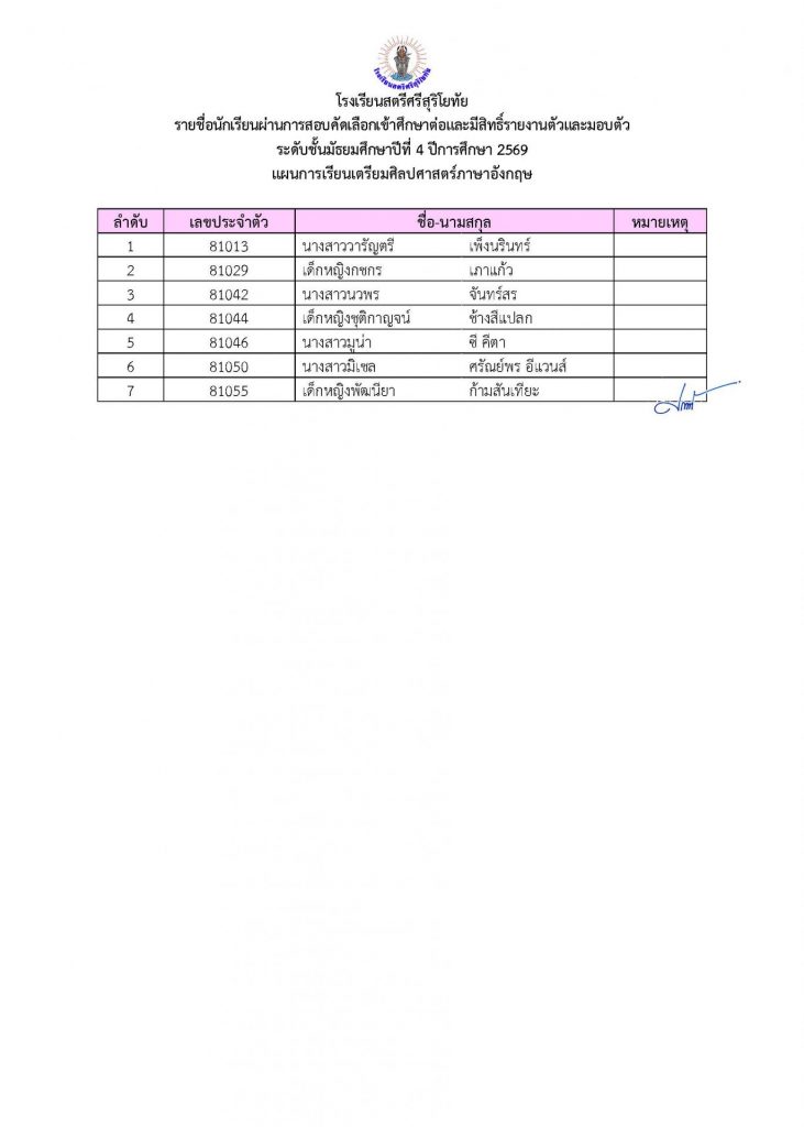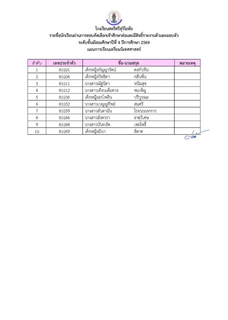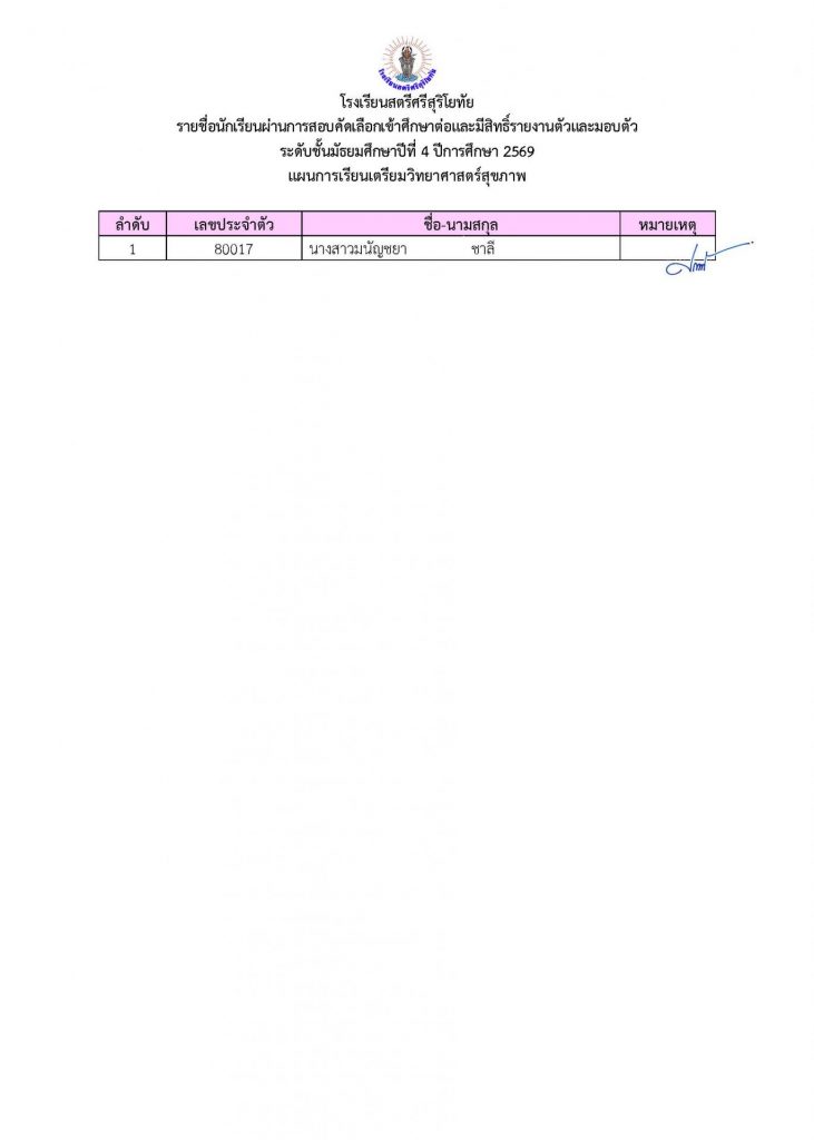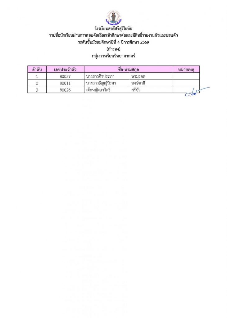 📢ประกาศรายชื่อผู้ผ่านการคัดเลือกเข้าศึกษาต่อระดับชั้น ม.4 ประเภทห้องเรียนปกติ ปีการศึกษา 2569