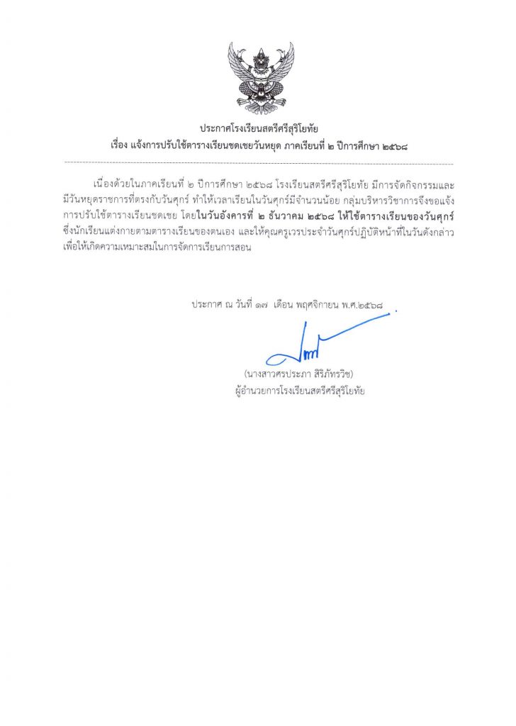 • ปรับใช้ตารางเรียนชดเชยวันหยุด