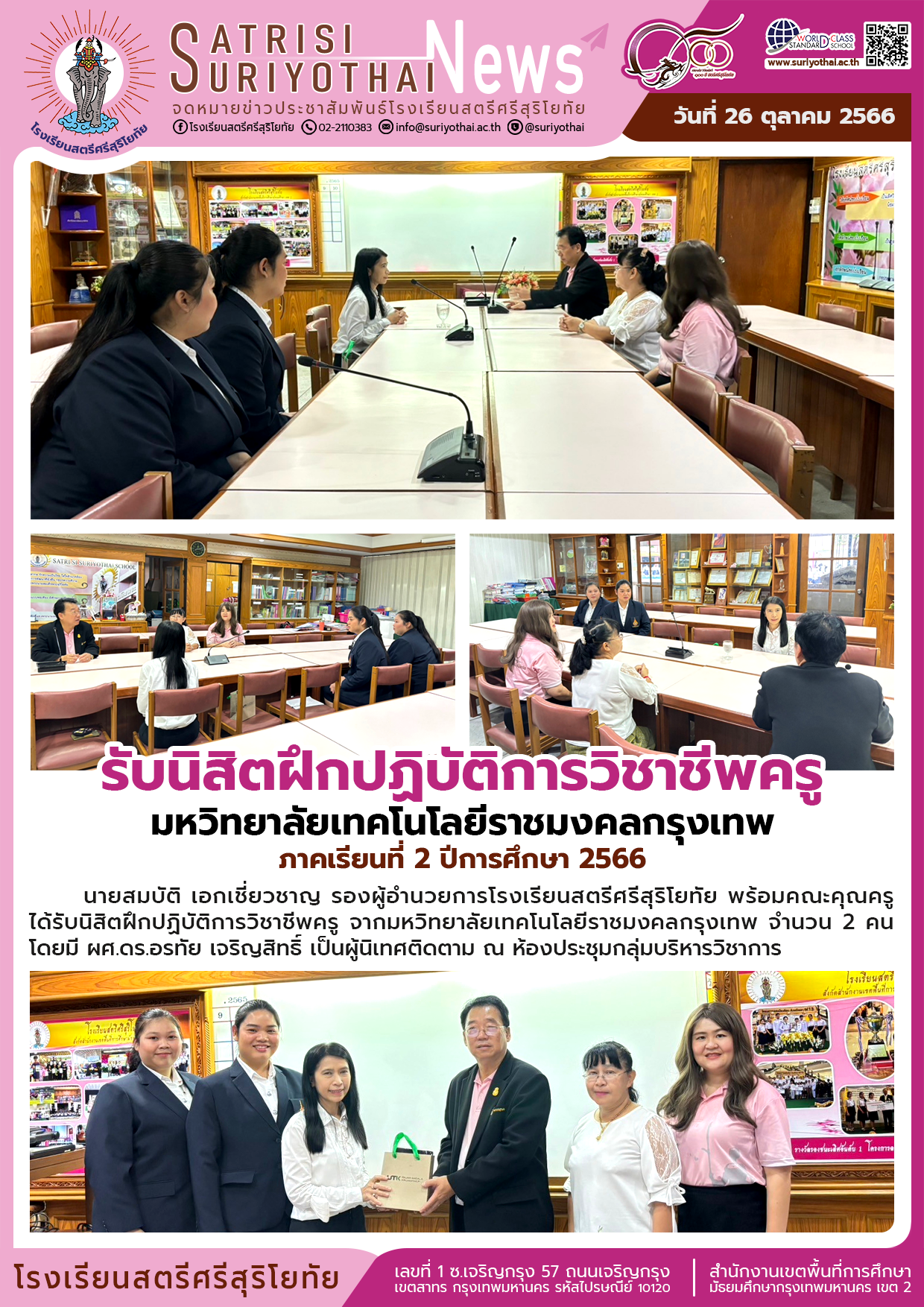 เว็บไซต์ โรงเรียนสตรีศรีสุริโยทัย มีการใช้งานเทคโนโลยีคุกกี้ หรือ เทคโนโลยีอื่นที่มีลักษณะใกล้เคียงกันกับคุกกี้ บนเว็บไซต์ของเรา โปรดศึกษา นโยบายการใช้คุกกี้ และ นโยบายความเป็นส่วนตัว ก่อนใช้บริการเว็บไซต์ ได้ที่ลิงค์ด้านล่าง